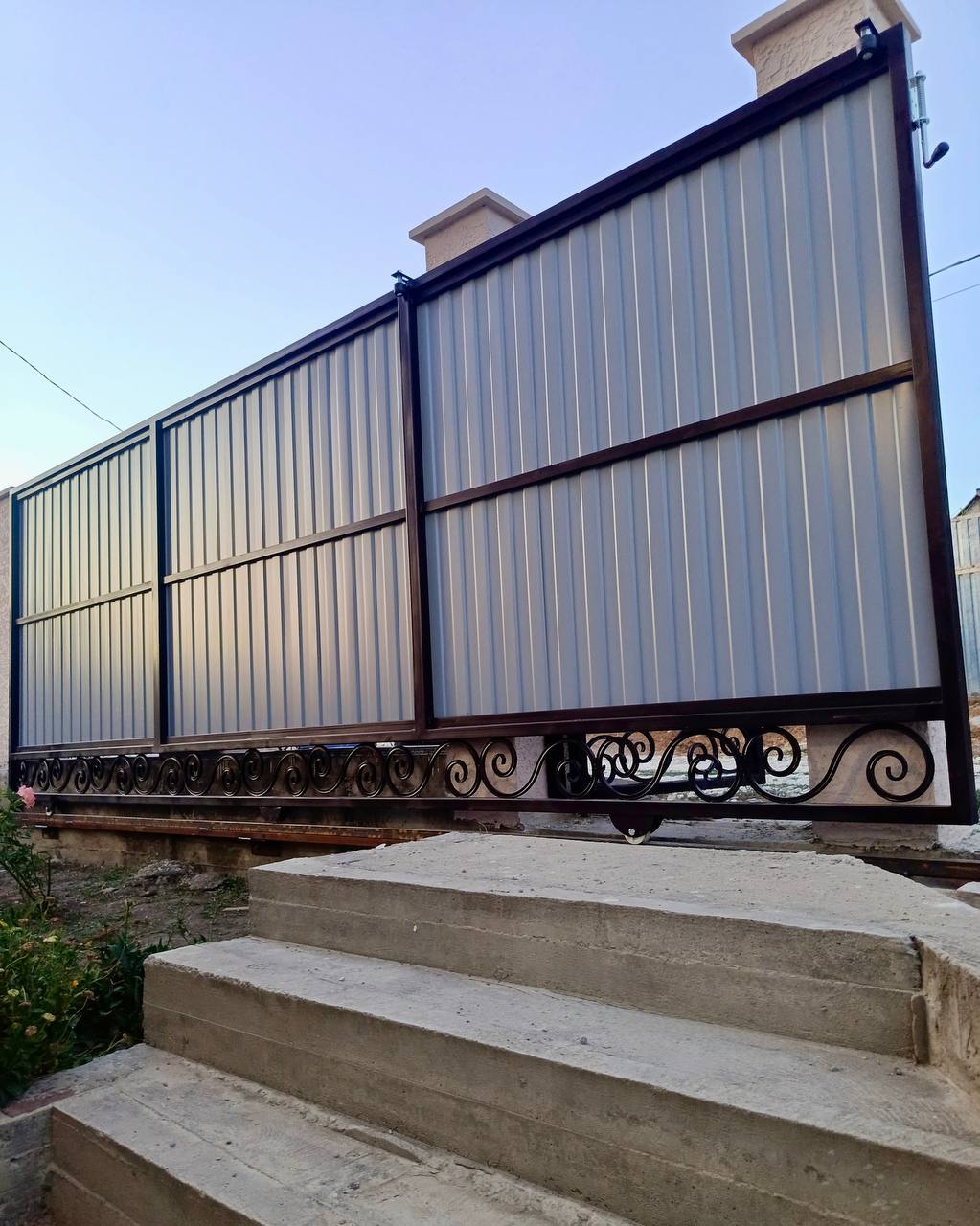 - Заполнение: профлист С8 с декоративными коваными элементами.