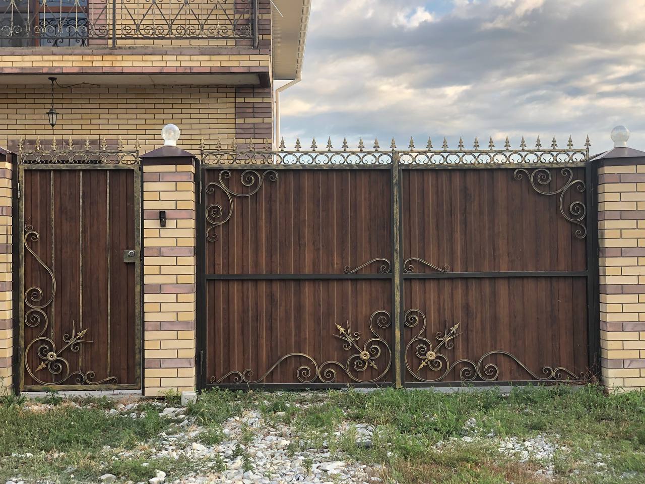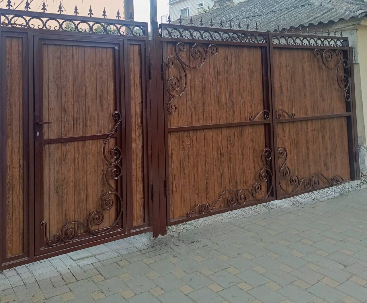 Да, это наша популярная опция. В одну из створок врезается и укрепляется калитка. Экономит место и материалы.